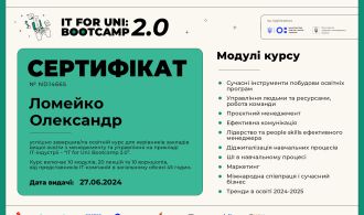 Ломейко Олександр Петрович успішно завершив освітній курс для керівників закладів вищої освіти з менеджменту та управління на прикладі ІТ-індустрії – “IT for Uni: Bootcamp 2.0”. Після проходження цього інтенсивного курсу він отримав сертифікат, який підтверджує його знання та компетенції в галузі сучасних підходів до управління у сфері освіти з використанням IT-інструментів. “IT for Uni: Bootcamp […]