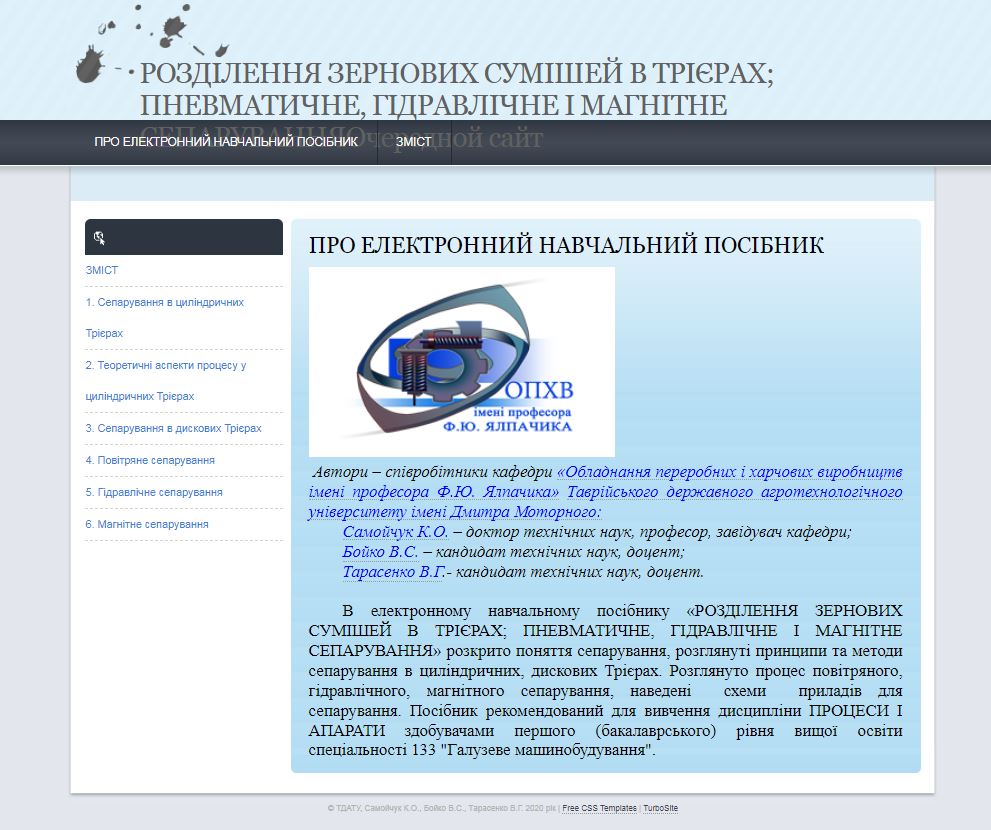 - Самойчук К.О., Бойко В.С., Тарасенко В.Г. Розділення зернових сумішей в трієрах 2020 р.