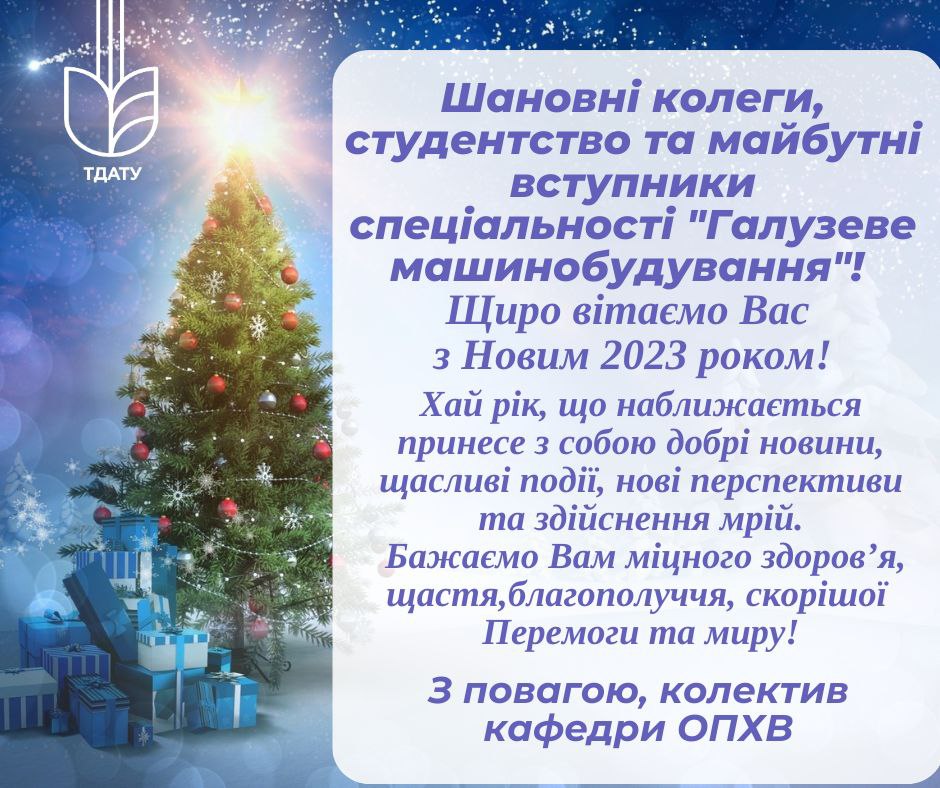 Колектив кафедри ОПХВ вітає Вас з Новим 2023 роком!
