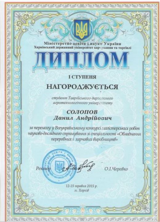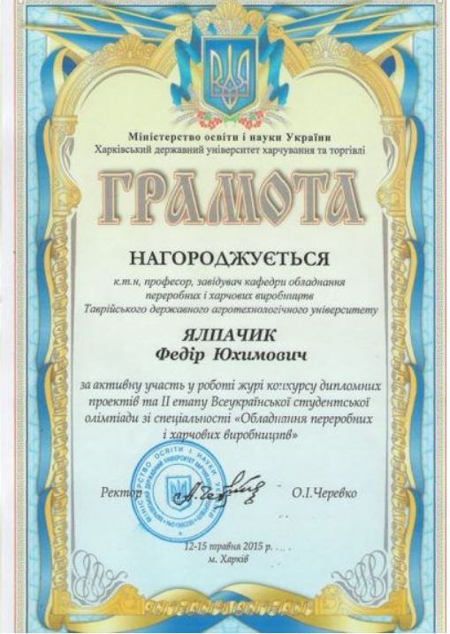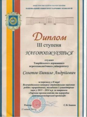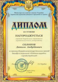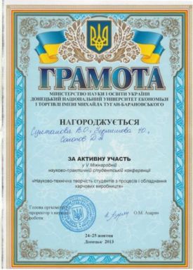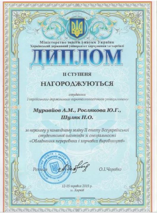 - Всеукраїнський конкурс на кращу наукову роботу серед студентської молоді (м. Київ, Харків, Одеса)