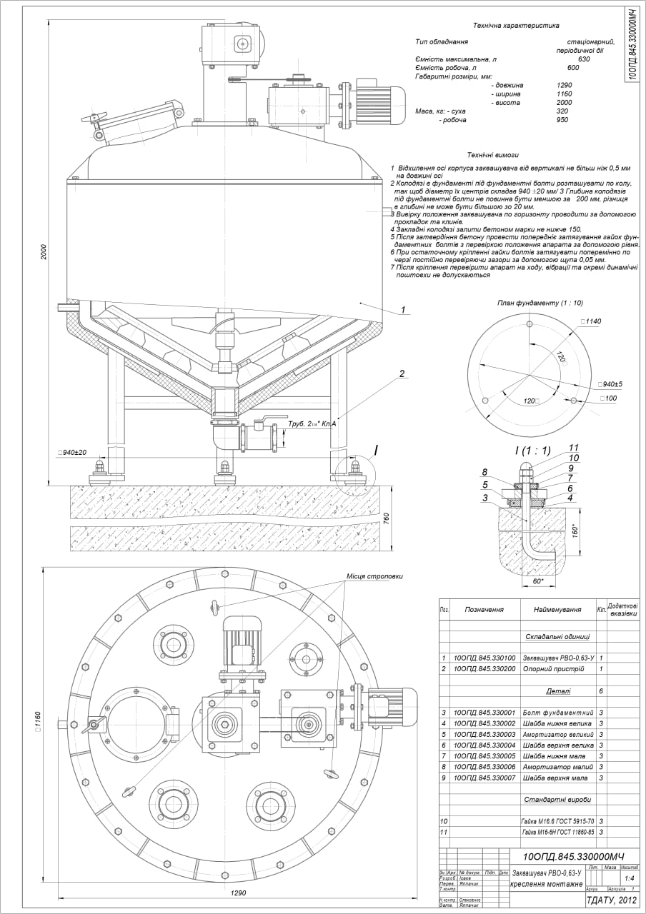 Приклад оформлення монтажного креслення технологічного обладнання: