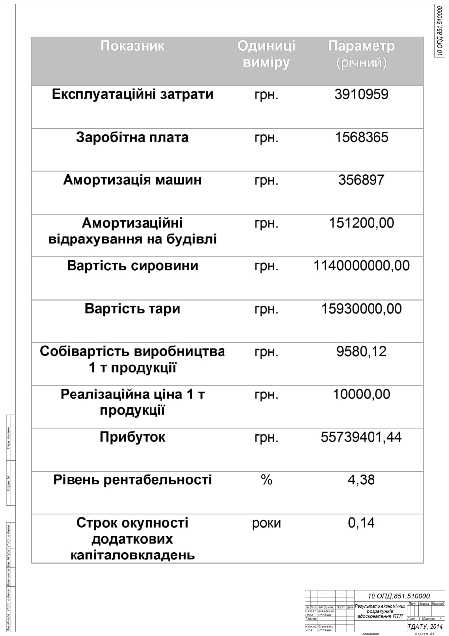 Приклад оформлення графічного аркуша “Результати економічних розрахунків вдосконалення ПТЛ”: