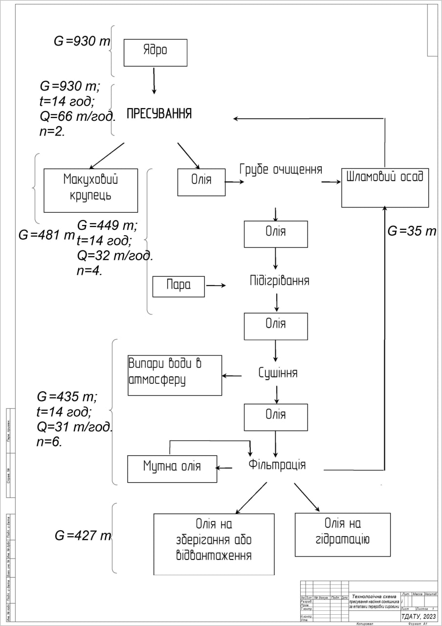 Приклад оформлення графічного аркуша “Технологічна схема виробництва продукту за етапами переробки”: