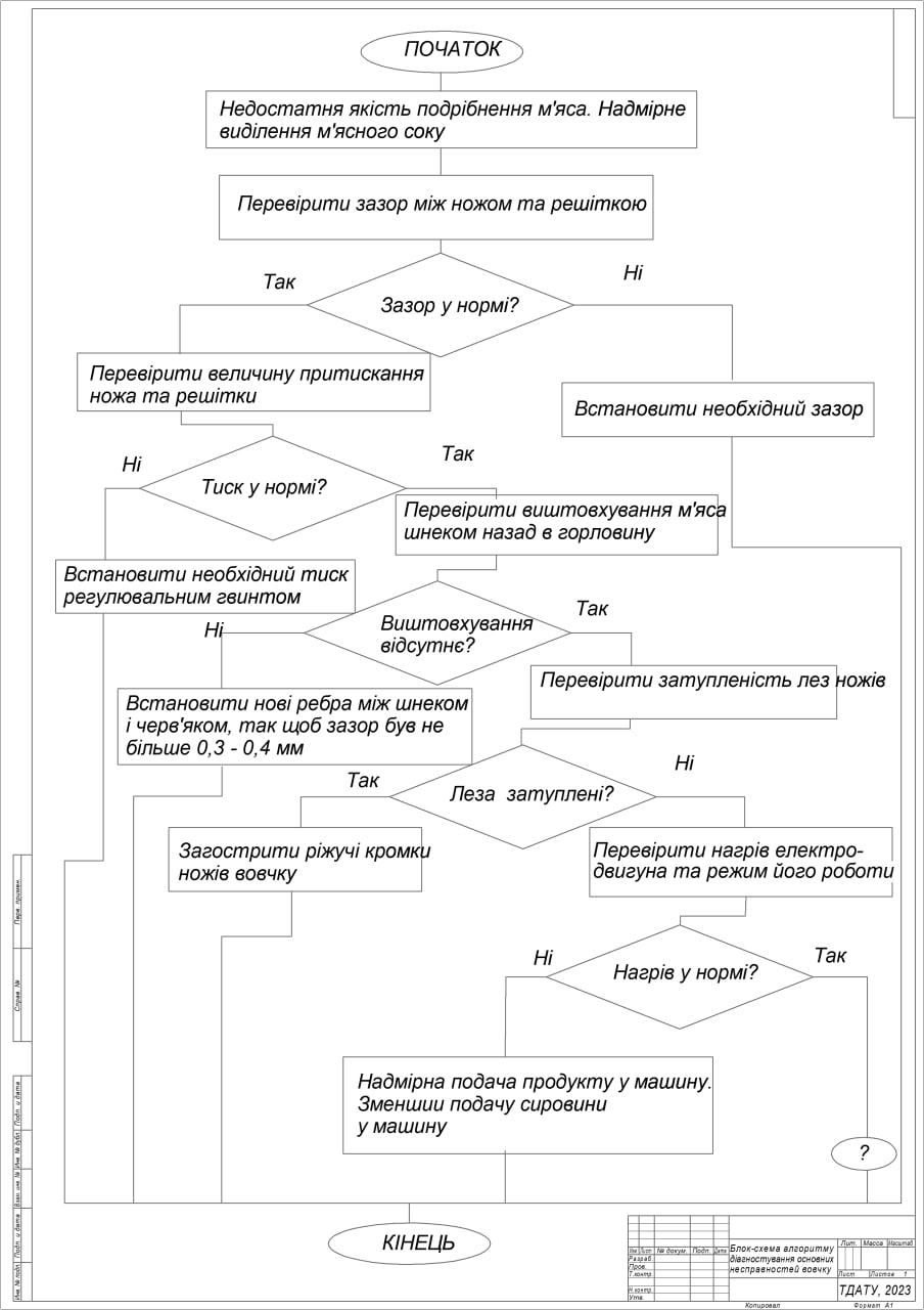 Приклад оформлення графічного аркуша “Блок-схема алгоритму діагностування основних неспрвностей”: