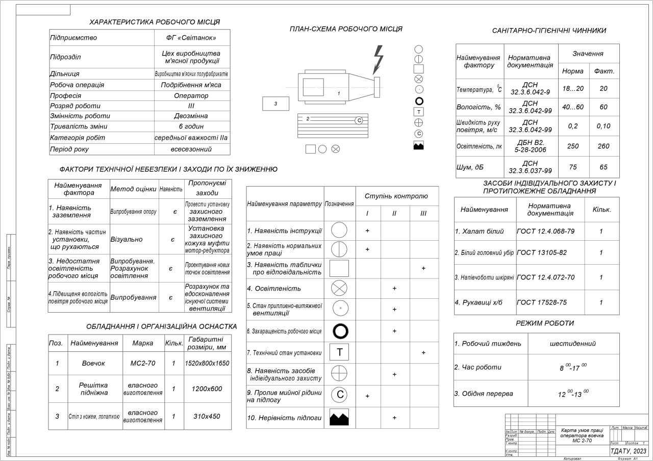 Приклад оформлення графічного аркуша “Карта умов праці оператора технологічного обладнання”: