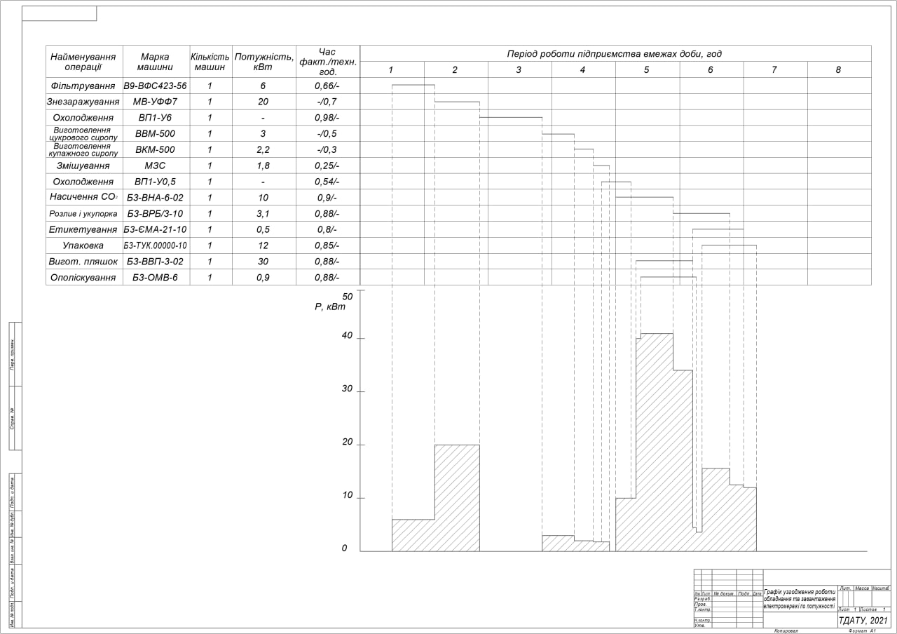 Приклад оформлення графічного аркуша “Графік узгодження роботи обладнання та завантаження електромережі по потужності “: