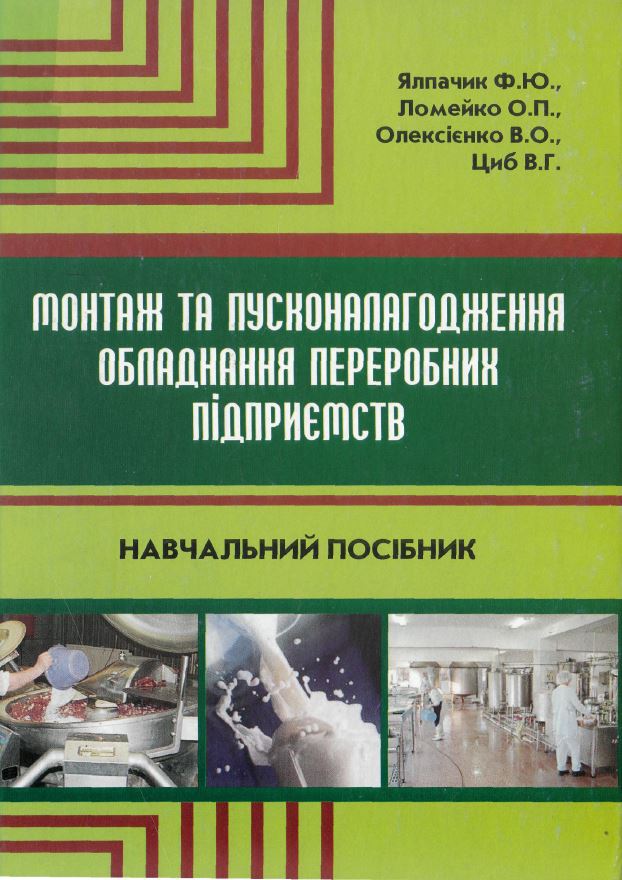 Ялпачик Ф.Ю. Монтаж та пусконалагодження обладнання переробних підприємств / Ф.Ю. Ялпачик, О.П. Ломейко, В.О. Олексієнко, В.Г. Циб: Навч. посібник . Мелітополь, ТОВ “Видавничий будинок ММД”, 2009.–156с. (гриф МОН)