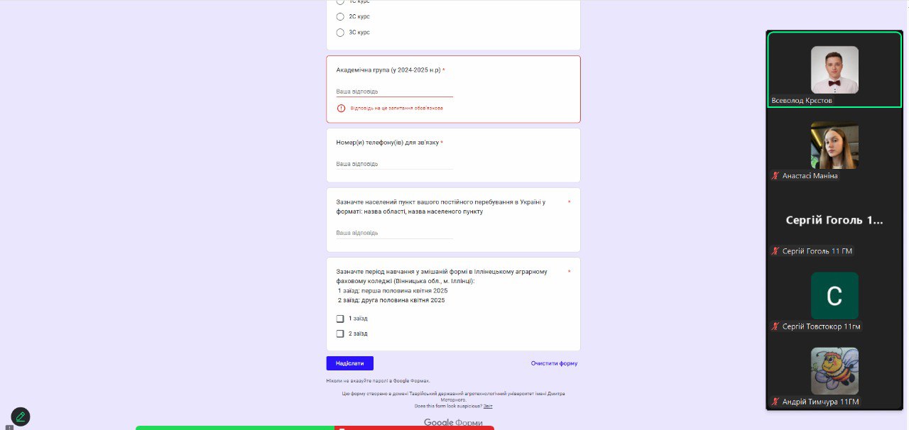 Діяльність наукового гуртка за тематикою “Дослідження процесу переробки зернової і рослинної сировини”