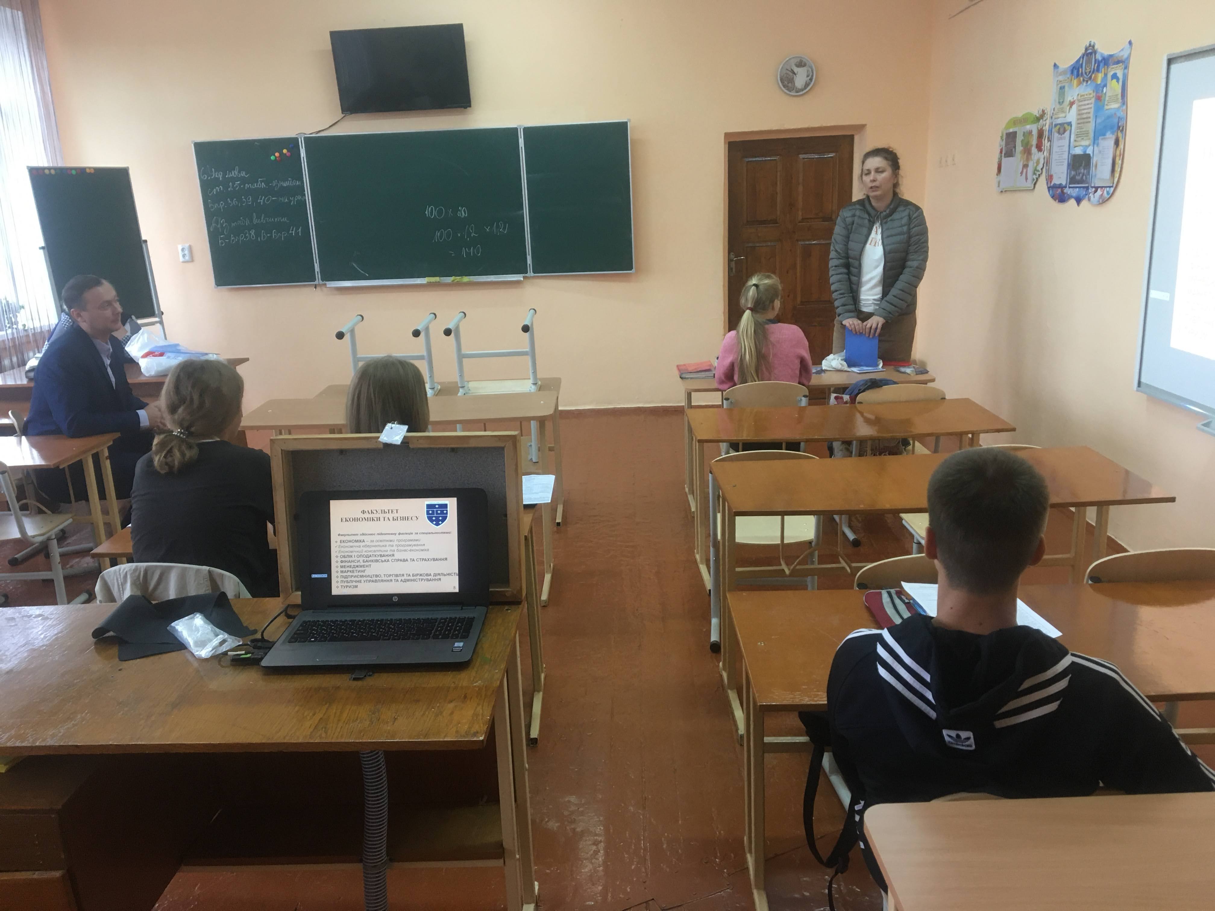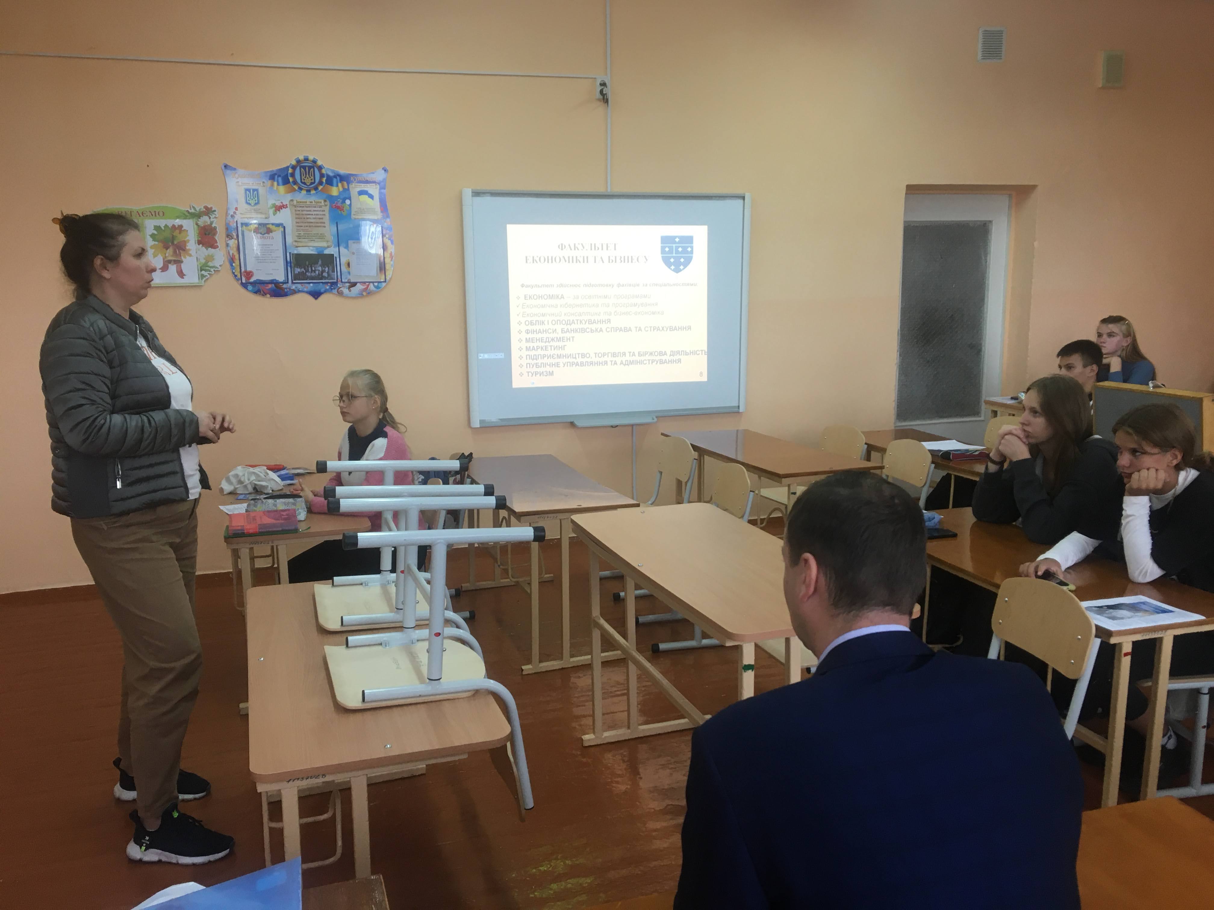 З керівництвом 5 навчальних закладів проведені бесіди щодо можливостей координації дій, спрямованих на організацію профорієнтаційної роботи в регіоні, узгоджені плани спільної роботи. В випускних класах загальноосвітніх навчальних закладів проведені бесіди з використанням мультимедійної презентації. (загалом 9 заходів). Кирило Олегович ознайомив учнів з умовами вступу та перевагами здобуття освіти саме в Таврійському державному агротехнологічному університеті імені Дмитра Моторного, про можливості проходження закордонних практик та навчання за дуальною формою освіти, спеціальностями, за якими університетом надаються освітні послуги, відповідністю конкурсних предметів ЗНО обраним спеціальностям. Дар’я Георгіївна розповіла про відмінності спеціальностей економічного профілю та можливості здобуття освіти одночасно за двома спеціальностями. Всі учні отримали роздаткові інформаційні матеріали та запрошення на День відкритих дверей університету 2 жовтня.