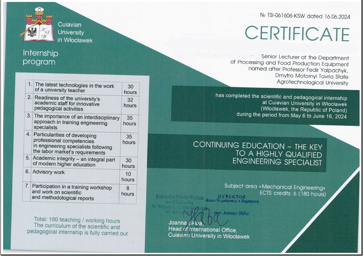 • Стажування та підвищення кваліфікації викладачів кафедри