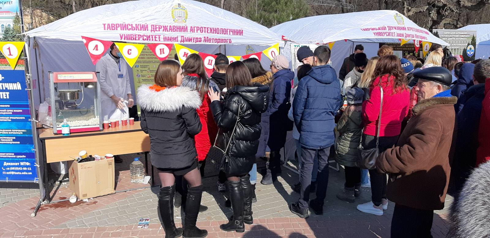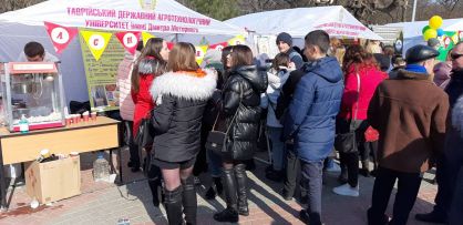 Цього року святкування Масниці для жителів міста Мелітополь проходило у міському парку культури та відпочинку імені Горького, де навколо паркового фонтану розмістилися виставкові експозиції підприємств та навчальних закладів міста.