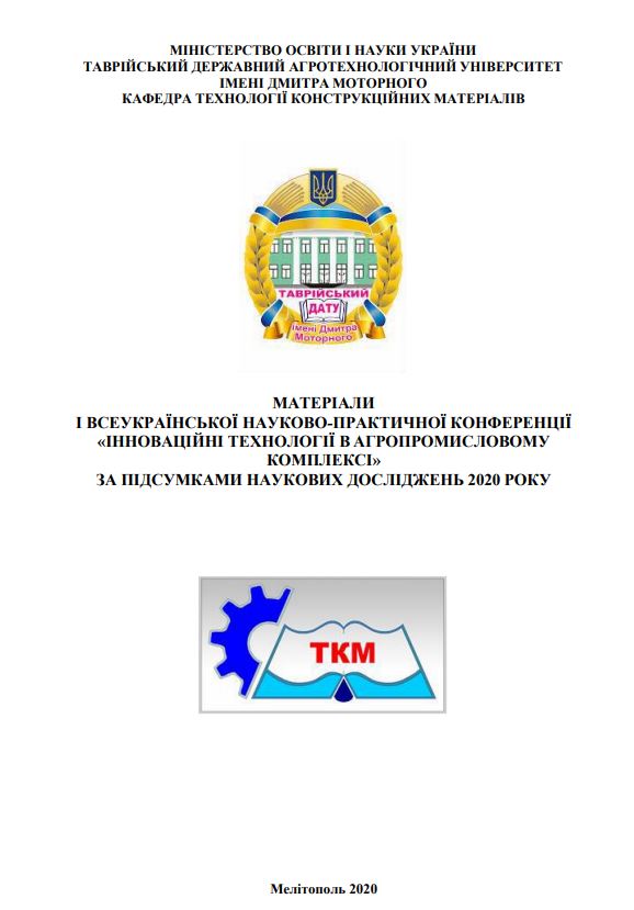 З1 по 30 вересня 2020 року у ТДАТУ відбулася I Всеукраїнська науково-практична конференція «ІННОВАЦІЙНІ ТЕХНОЛОГІЇ В АГРОПРОМИСЛОВОМУ КОМПЛЕКСІ» за підсумками наукових досліджень 2020 року. Асистент кафедри ОПХВ імені професора Ф.Ю. Ялпачика Ковальов О.О. прийняв активну участь уконференції, результатом якої є опублікування 5-ти тез-доповідей зі студентами спеціальності 133 Галузеве машинобудування у Матеріалах конфренції.