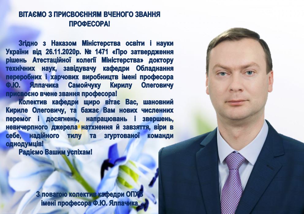 ВІТАЄМО САМОЙЧУКА КИРИЛА ОЛЕГОВИЧА З ПРИСВОЄННЯМ ВЧЕНОГО ЗВАННЯ ПРОФЕСОРА!