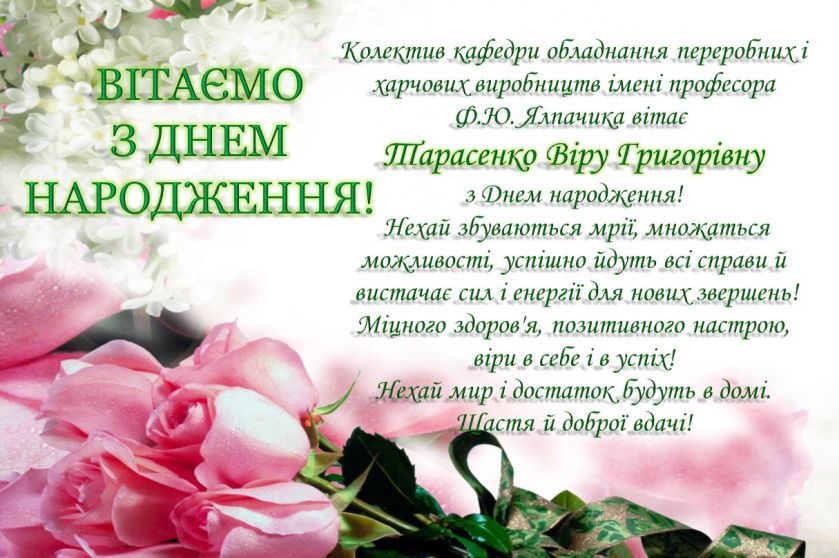 Вітаємо з Днем народження Тарасенко Віру Григорівну