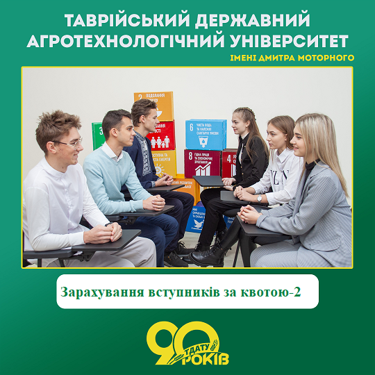 22 серпня 2022 року відбулося зарахування вступників за квотою-2 на навчання до Таврійського державного агротехнологічного університету імені Дмитра Моторного.