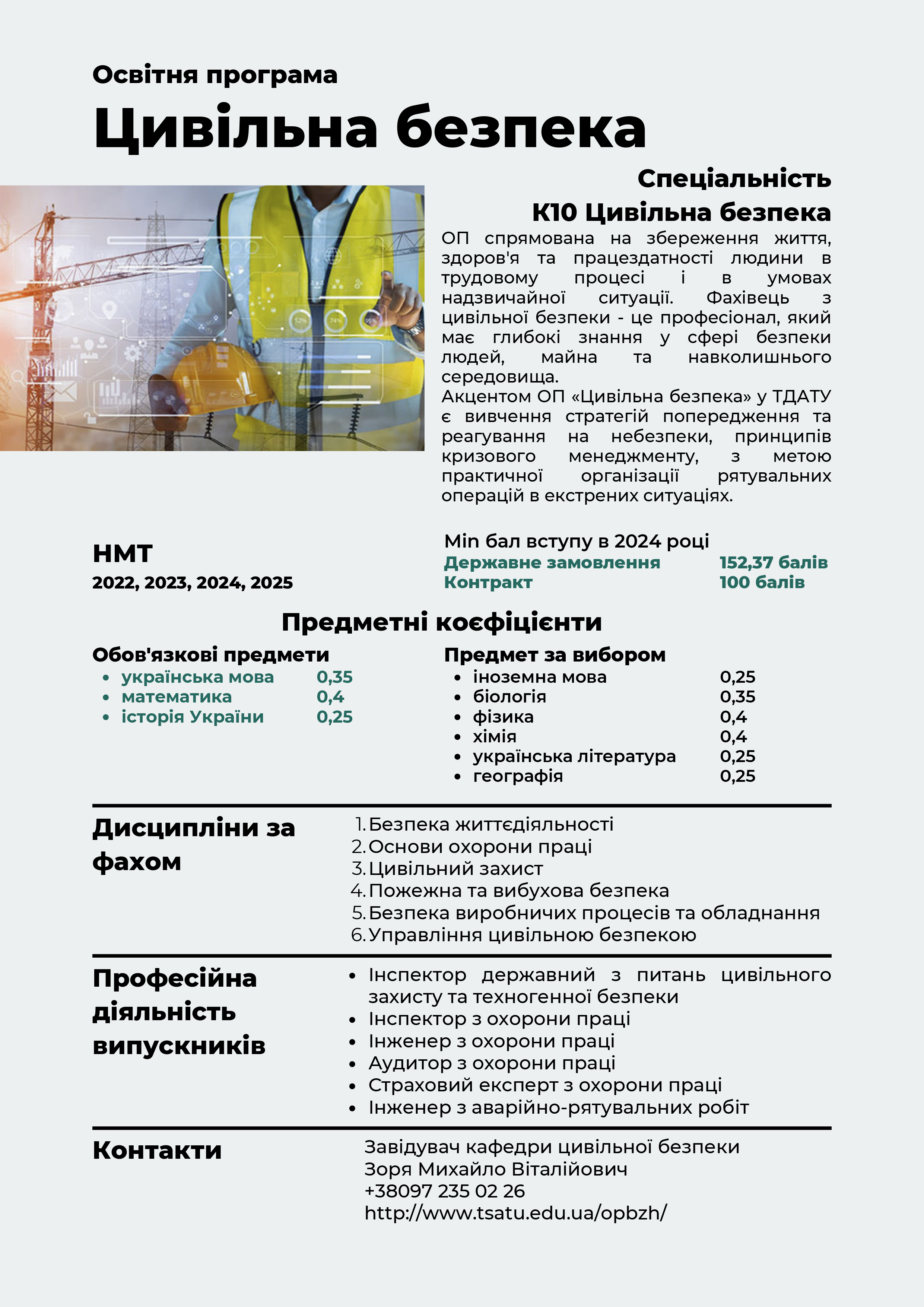 Орієнтир спеціальностей ТДАТУ. Спеціальність К10 “Цивільна безпека”