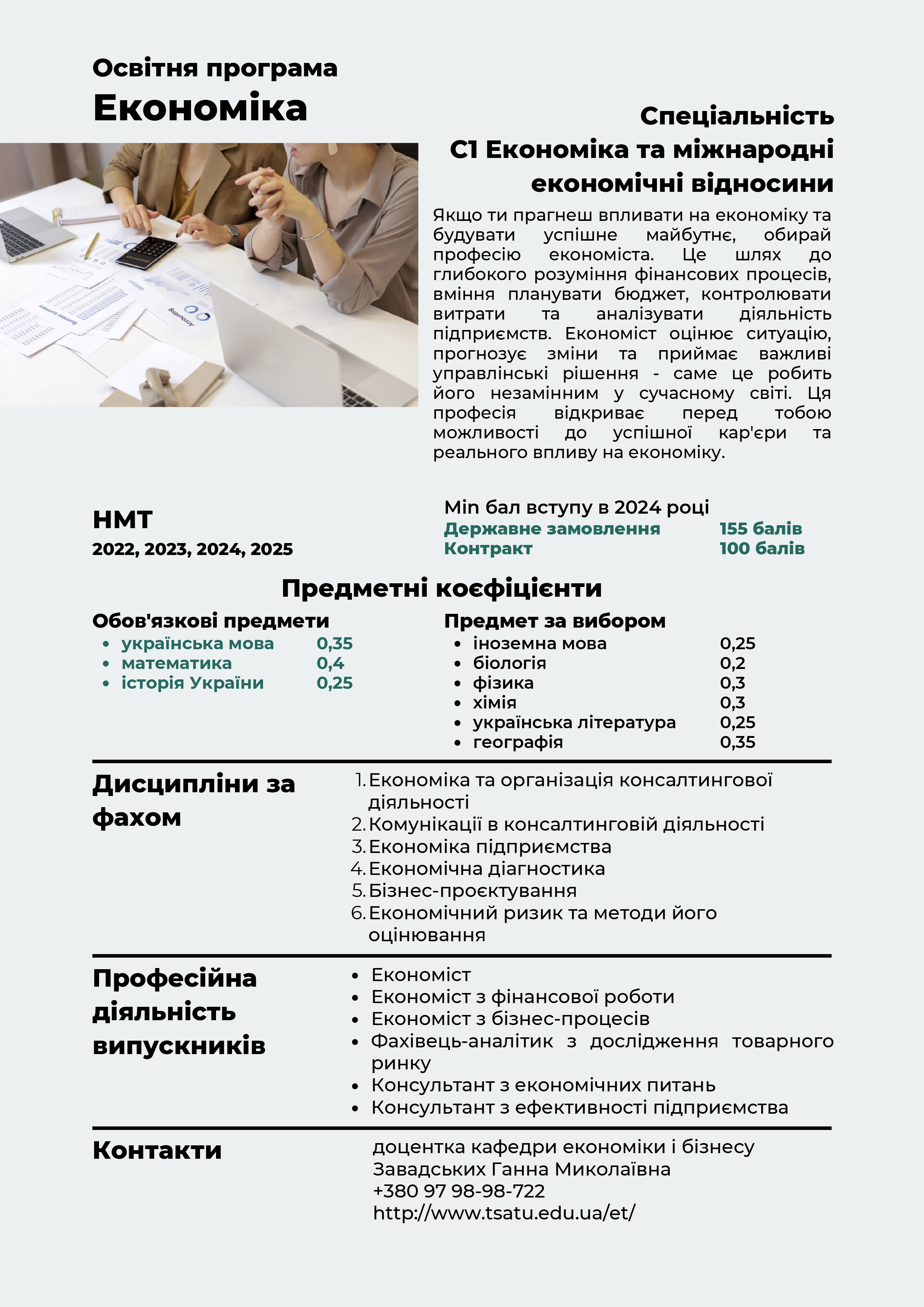 Орієнтир спеціальностей ТДАТУ. Освітня програма С1.01 “Економіка”