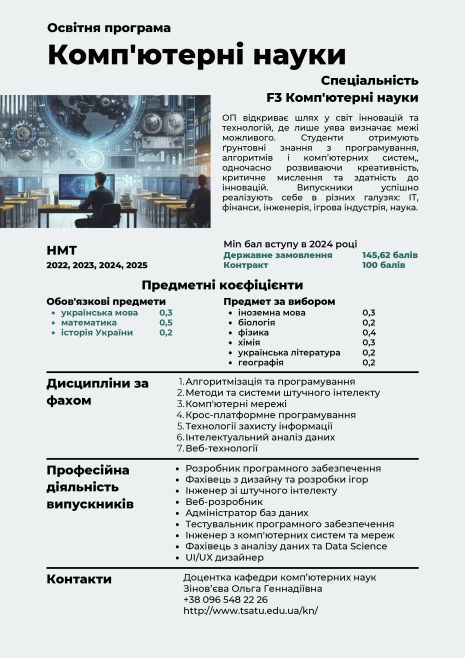 Computer Science відкриває двері до неймовірного світу інновацій та технологічних досягнень, де тільки уява обмежує можливості. Це не просто професія, це стиль життя!