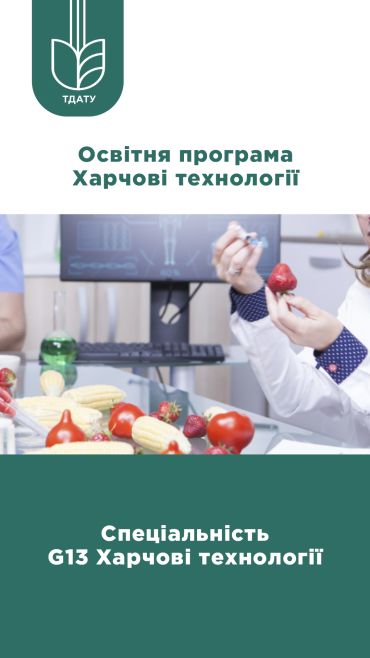 Таврійський державний агротехнологічний університет імені Дмитра Моторногопропонує знайомство з найсмачнішою спеціальністю G13 «ХАРЧОВІ ТЕХНОЛОГІЇ».