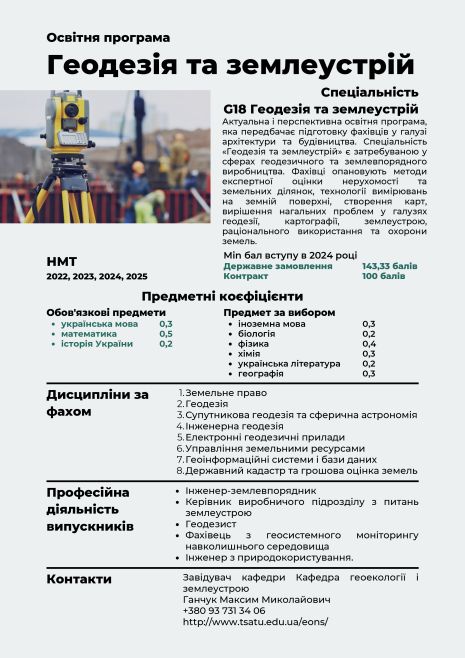 Спеціальність G18 «Геодезія та землеустрій» для тих, хто любить землю, хоче займатися її охороною та відтворенням!