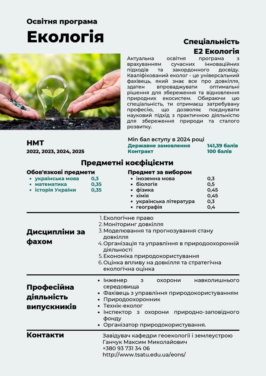 Орієнтир спеціальностей ТДАТУ. Спеціальність Е2 “Екологія” і JENGA