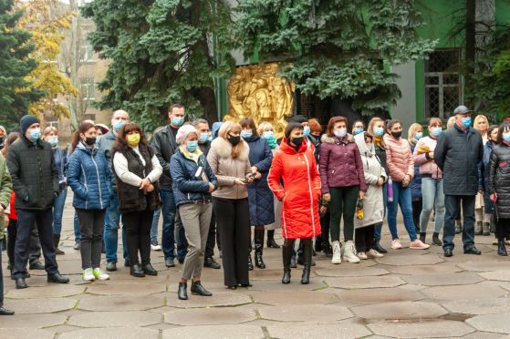 Наприкінці мітингу студентські активісти ТДАТУ поклали до підніжжя постаменту Дмитра Моторного живі квіти.