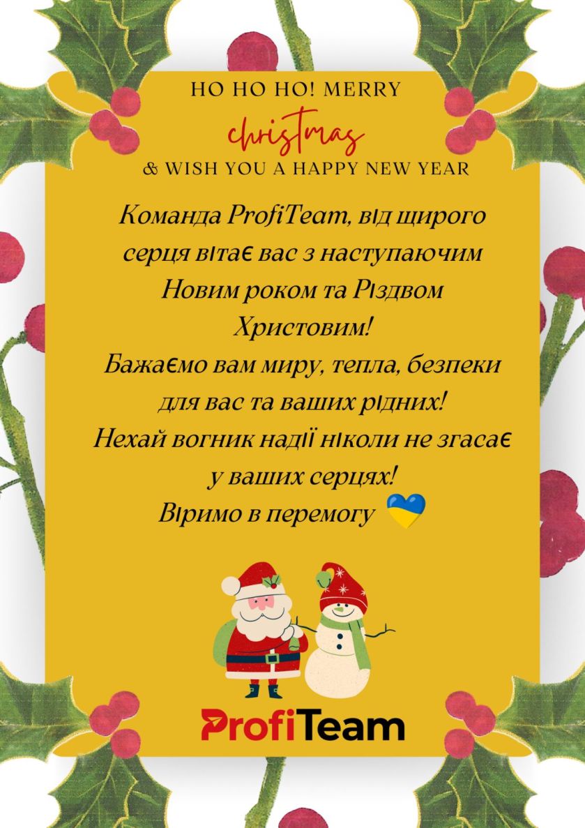 Команда ProfiTeam від щиро серця вітає Вас з наступаючим Новим роком та Різдвом Христовим!