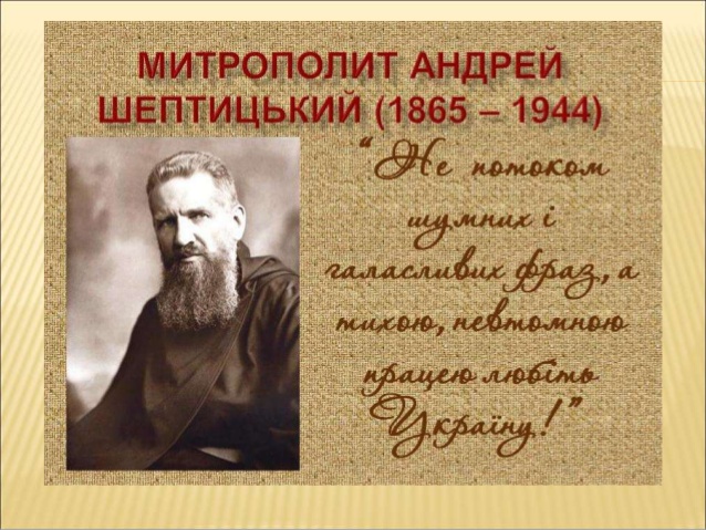 Шептицький Андрей – граф, митрополит Галицький, архиєпископ Львівський, єпископ Кам’янець-Подільський, громадський і церковний діяч, меценат.