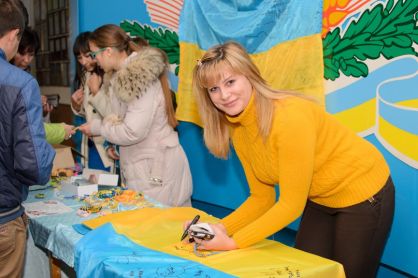 На великій перерві у головному корпусі студенти могли придбати сувеніри: фенечки, браслети, смачну випічку, кекси і пиріжки за символічною ціною. Також були пошиті прапори, де всі бажаючі могли залишити свої побажання, натхнення для солдатів, підтримку.