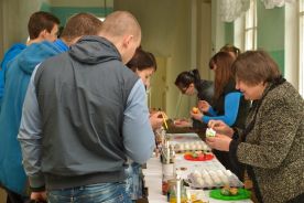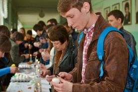 У дружній атмосфері, допомагаючи один одному, студенти ознайомилися з традиціями нашого народу і навчилися творити писанки. Жоден студент не залишився осторонь цієї справи, і з великою цікавістю все занурилися в царину розпису елементів писанки. Найцікавішим для студентів виявився процес знімання воску з яєць, адже під такою оболонкою приховувались усі фантазії.