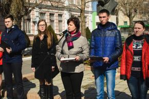 Учасниками мітингу були студенти ТДАТУ. Завідувач кафедри суспільно-гуманітарних наук О.М. Максимець у своєму вступному слові наголосила на актуальності творів Великого Кобзаря і закликала всіх присутніх виконувати заповіти Т.Г. Шевченка. Ветеран ТДАТУ О.К. Круть заспівав пісню на слова Великого Пророка  «Думи мої, думи мої…». Студентка 21 КН групи Лупачова Елеонора продекламувала власний вірш, присвячений Т.Г. Шевченкові.