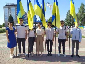 Сьогоднішній ранок у Мелітополі розпочався з урочистого зібрання на центральній площі Перемоги, яке приурочене до 25-ої річниці Конституції України. Вся площа була прикрашена синьо-жовтими стягами.