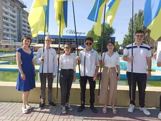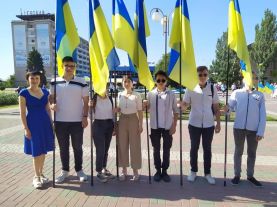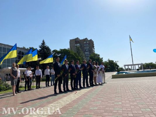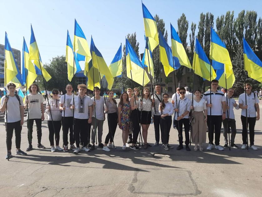 Сьогоднішній ранок у Мелітополі розпочався з урочистого зібрання на центральній площі Перемоги, яке приурочене до 25-ої річниці Конституції України. Вся площа була прикрашена синьо-жовтими стягами.