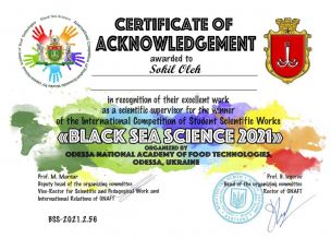 Цей конкурс щорічно проводиться на базі Одеської національної академії харчових технологій під егідою Black Sea Universities Network та ISEKI-Food Association з галузі науки «Економіка та управління», 2 етап якого проходив 23-24 березня 2021 року.