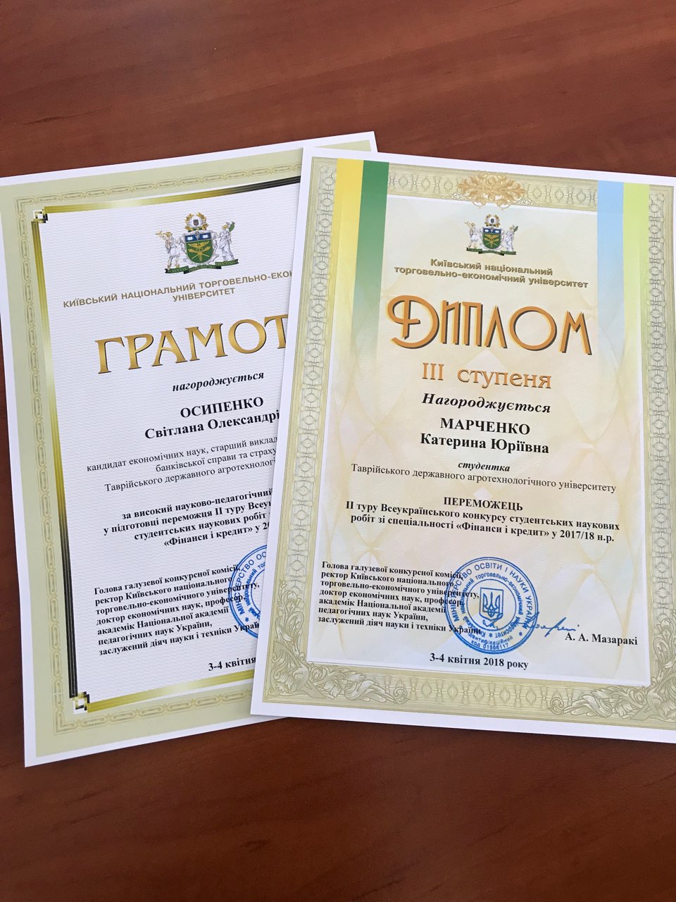 Перемога у ІІ турі Всеукраїнського конкурсу студентських наукових робіт зі спеціальності “Фінанси і кредит”