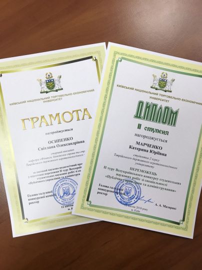 Вітаємо Марченко Катерину та її наукового керівника Осипенко Світлану Олександрівну з перемогою у Всеукраїнському конкурсі студентських наукових робіт та бажаємо подальших успіхів у роботі!
