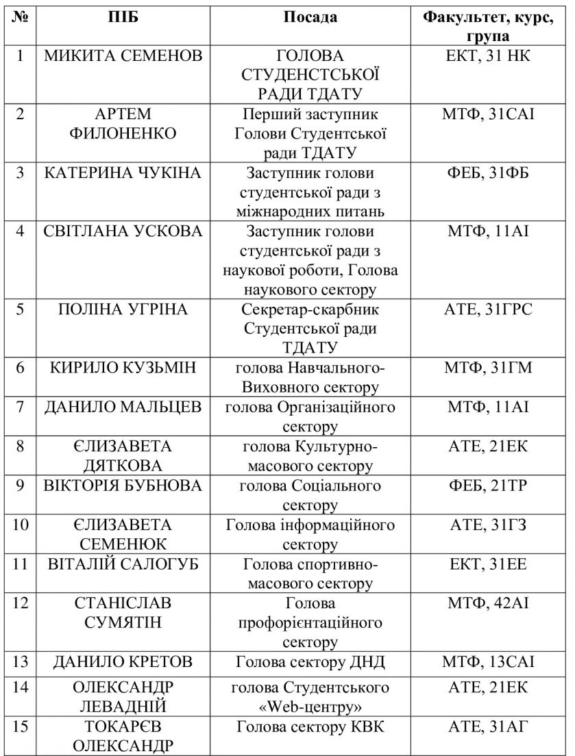 Березень для новообраної студради Таврійського державного агротехнологічного університету імені Дмитра Моторного ознаменувався першим  засіданням.  Заряджені працювати активісти вирішували нагальні питання.