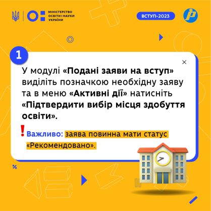 Нагадуємо, що підтвердити вибір місця навчання можна як в закладі освіти, так і віддалено. Детальніше про це тут.