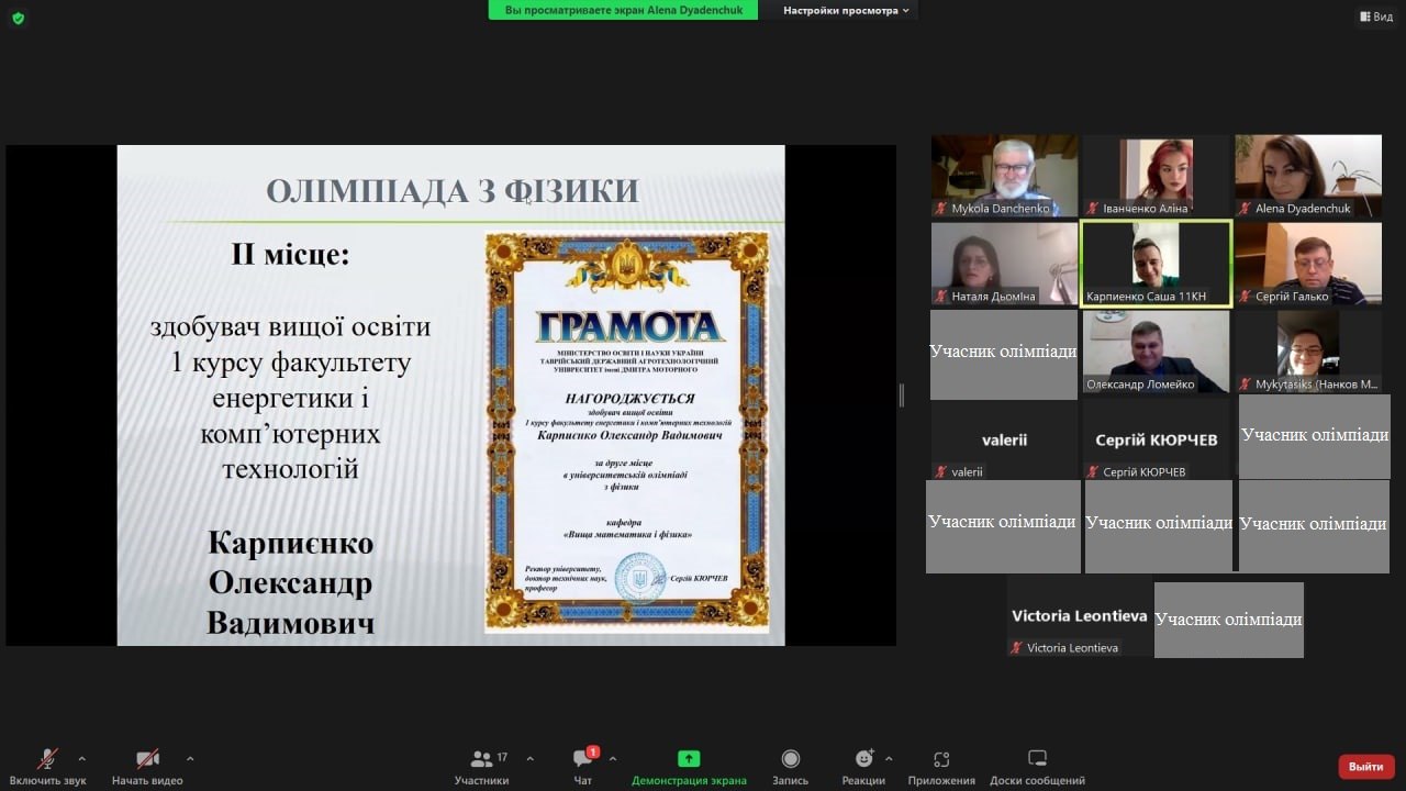 Підведення підсумків університетських студентських олімпіад з математики та з фізики