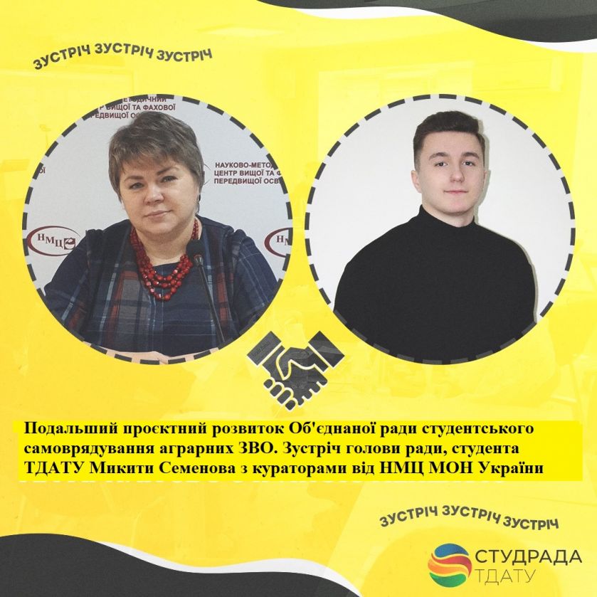 10 червня у місті Київ на базі Науково-методичного центру вищої та фахової передвищої освіти (НМЦ) МОН України відбулась зустріч голови Об’єднаної ради студентського самоврядування аграрних ЗВО України (далі Об’єднана рада) і за сумісництвом голови студради нашого університету Микити Семенова із керівництвом НМЦ. Метою зустрічі було обговорення основних напрямків подальшої роботи Об’єднаної ради нового скликання.