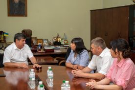 В ході візиту відбулася зустріч представників обласної влади з керівництвом ТДАТУ: ректором університету Володимиром Кюрчевим, проректором з НПР Олександром Ломейко та деканами факультетів Сергієм Кюрчевим, Ганною Ортіною і Іриною Івановою.