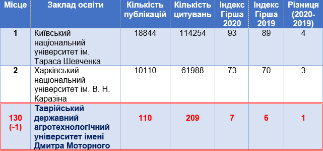Результати рейтингу закладів вищої освіти базуються на показниках бази даних Scopus, що є інструментом для відстеження цитування наукових статей, які публікуються співробітниками закладу вищої освіти. База даних Scopus індексує більше 20 000 наукових видань з технічних, медичних та гуманітарних наук. Також, до бази даних потрапляють публікації наукових журналів, матеріали конференцій та книжкових видань.