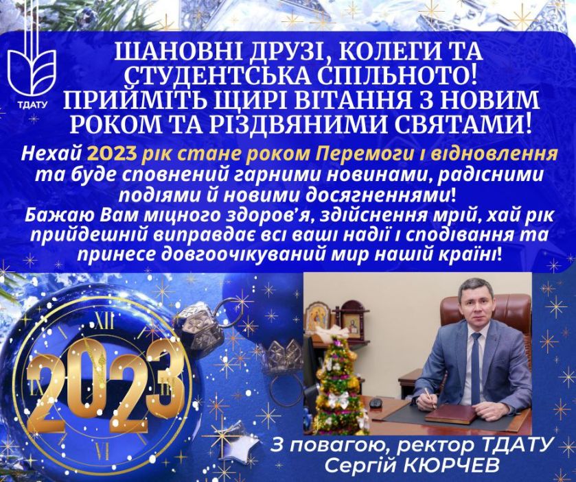 Привітання ректора ТДАТУ з Новорічними та Різдвяними святами