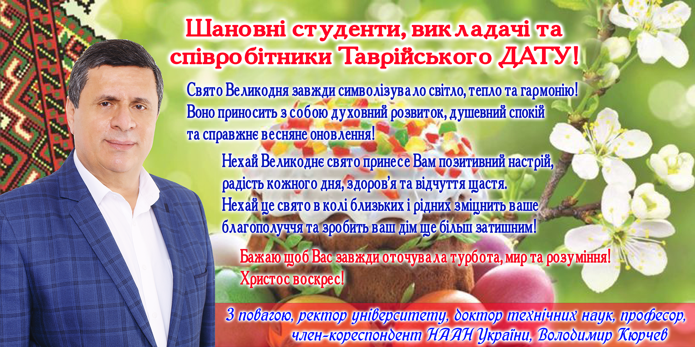 Привітання ректора з Великоднем