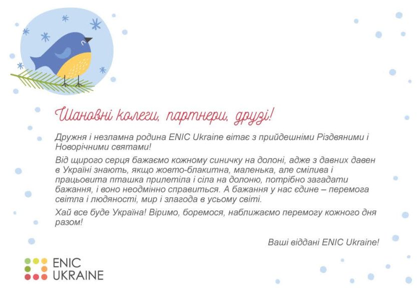 Дружня і незламна родина ENIC UKRAINE вітає з прийдешніми Різдвяними і Новорічними святами!
