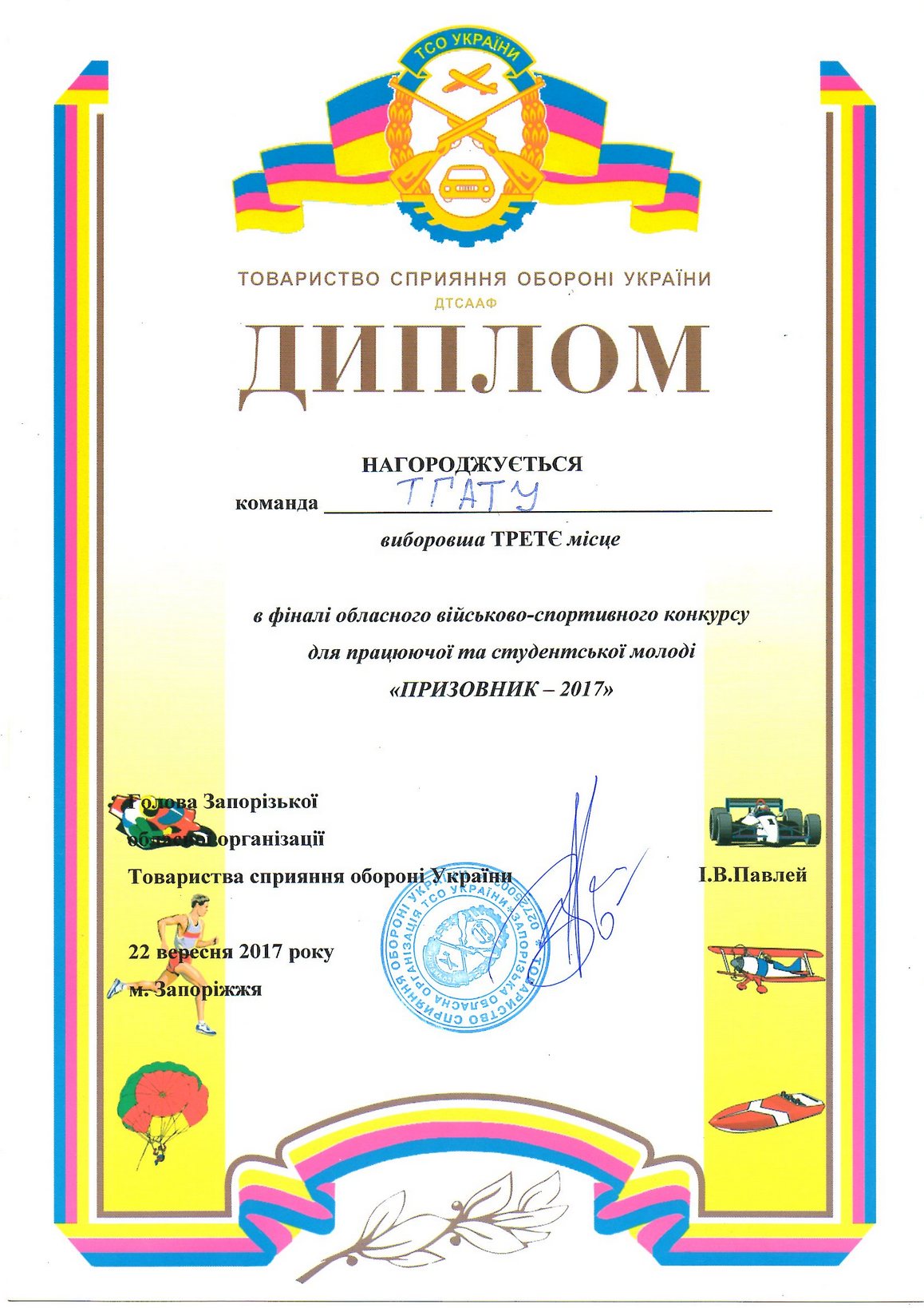 ПЕРЕМОГА КОМАНДИ ТДАТУ У ОБЛАСНОМУ ВІЙСЬКОВО-СПОРТИВНОМУ КОНКУРСІ «ПРИЗОВНИК-2017»
