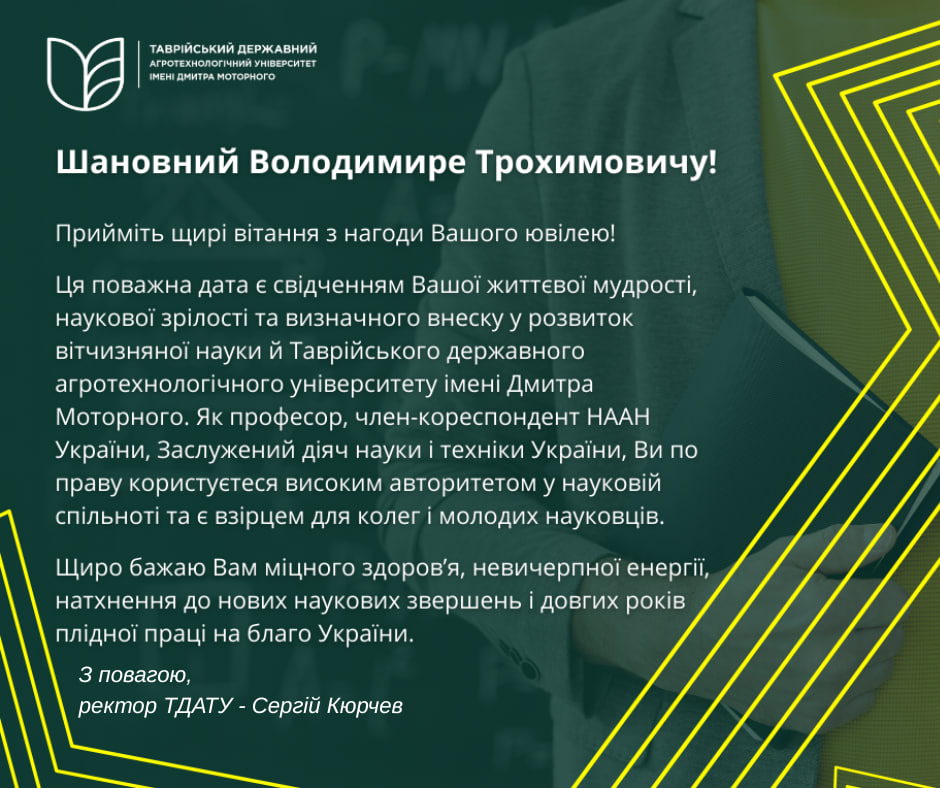 Ректор ТДАТУ вітає професора Володимира Надикта з ювілеєм