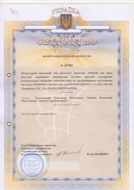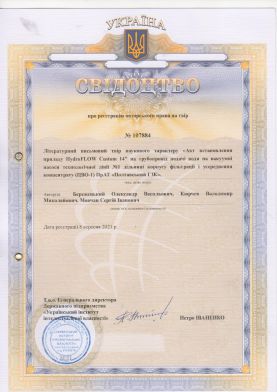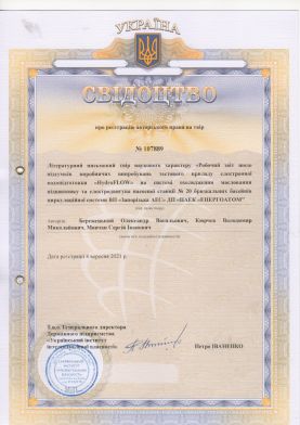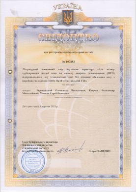 2. Свідоцтво про реєстрацію авторського права на твір №107884. Дата реєстрації 17 серпня 2021 р. №с202185859. Літературний письмовий твір наукового характеру «Акт встановлення Приладів HydroFLOW Custrom 14!! на трубопроводи подачі води на вакуумні насоси технологічної лінії №1 дільниці корпусу фільтрації і усереднення концентрату (ЦВО-1) ПрАТ «Полтавський ГЗК» / О.В. Бережецький., В.М.Кюрчев, С.І.Мовчан // Ідентифікатор: СR152080921. https://sis.ukrpatent.org
