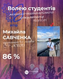 Михайло Савченко (МТФ)— 86 % підтримки;