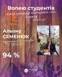 Альона Семенюк (ФЕБ) — 94 % підтримки;